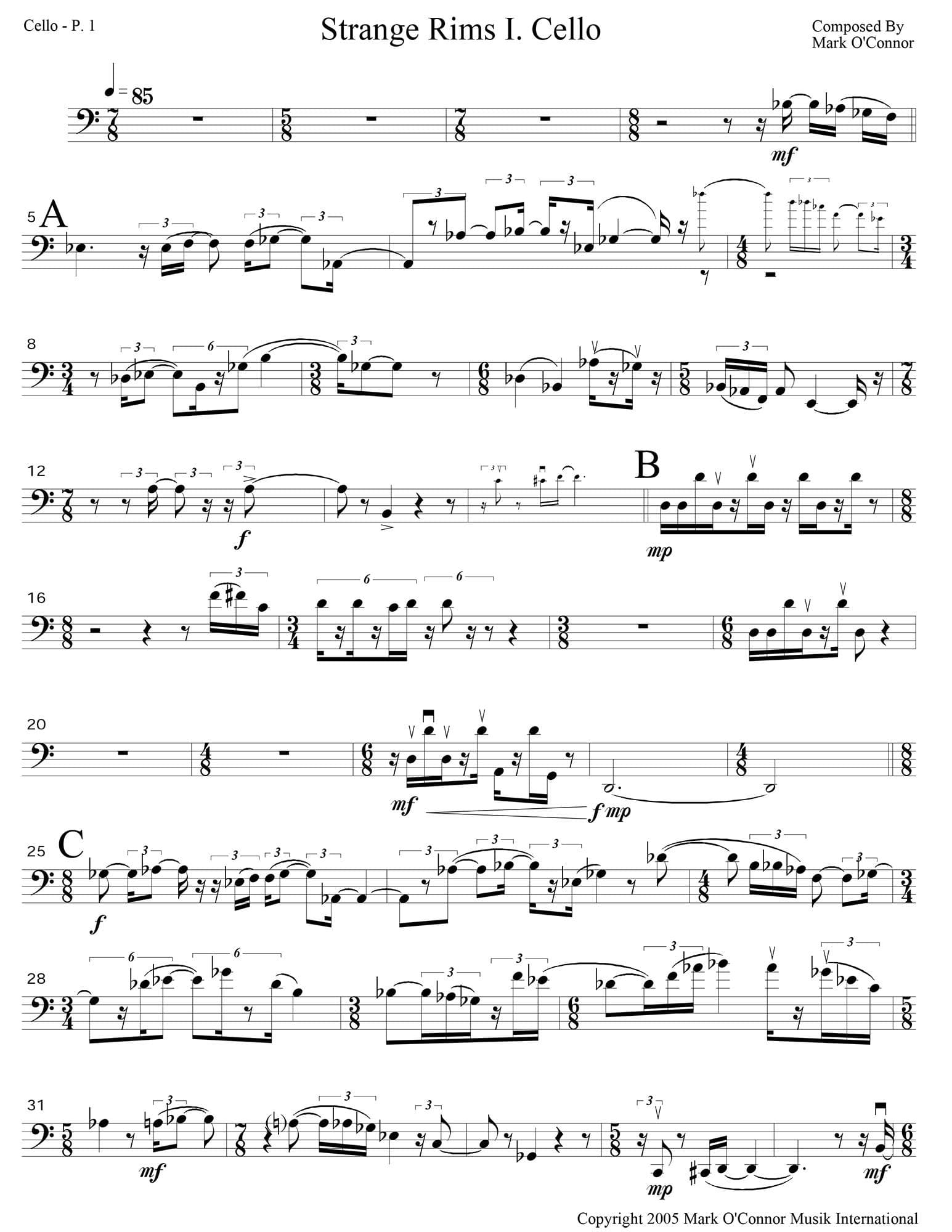 O'Connor, Mark - Piano Trio No. 2 (Strange Rims) for Piano, Violin, and Cello - Cello - Digital Download