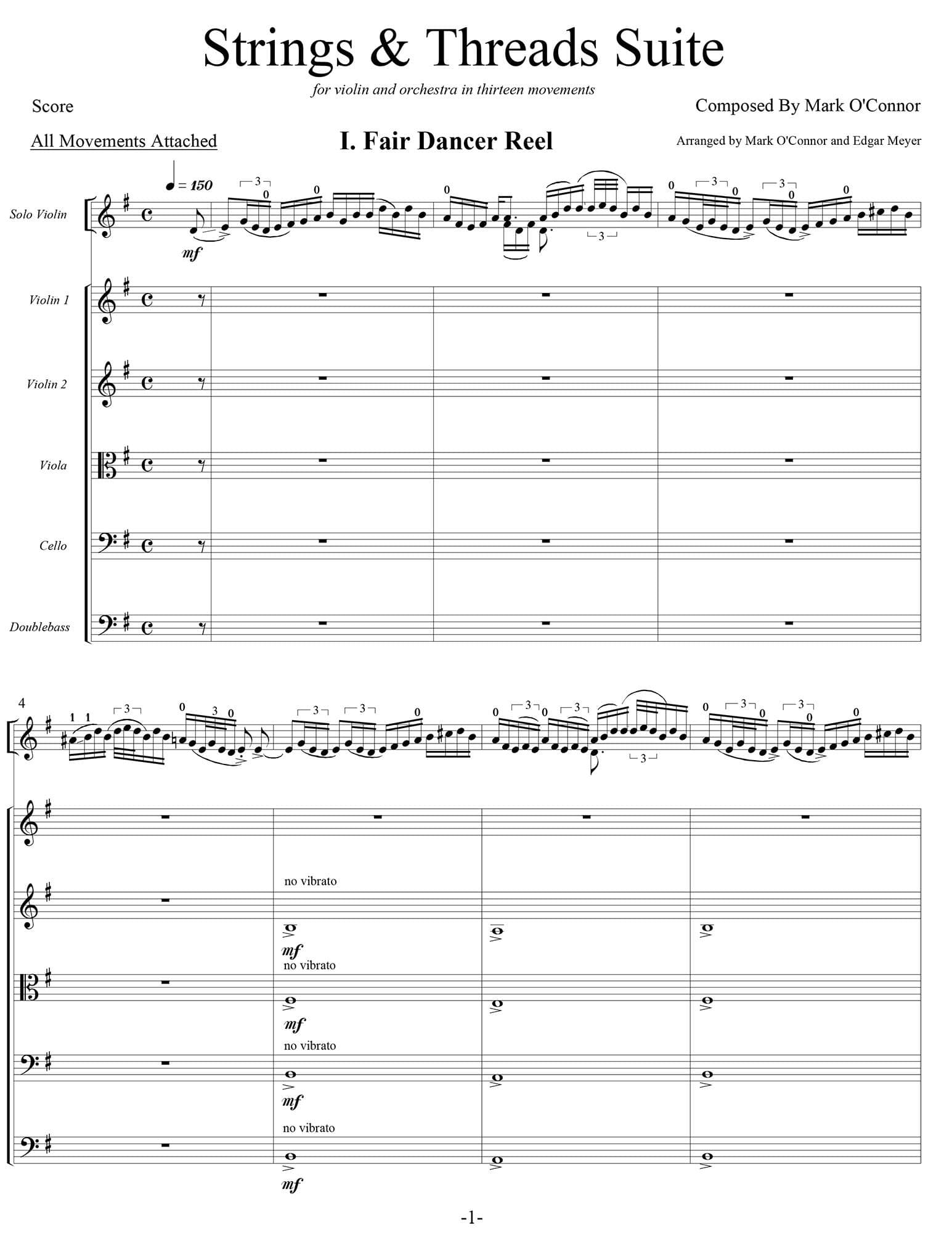 O'Connor, Mark - Strings & Threads Suite for Violin and String Orchestra - Score - Digital Download