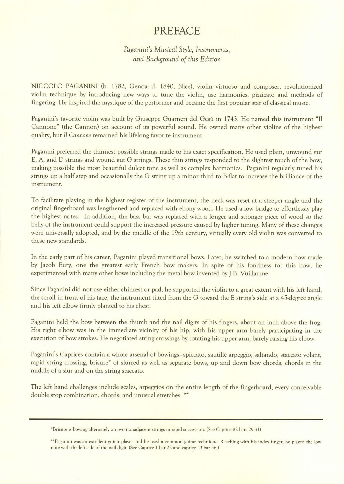 Since their first publication by Ricordi in 1820, Paganini's Caprices Op. 1 have been sources of inspiration for many great violinists and composers. They have no equal, "either in beauty, originality, or difficulty of performance," remarked the great violinist Ole Bull.