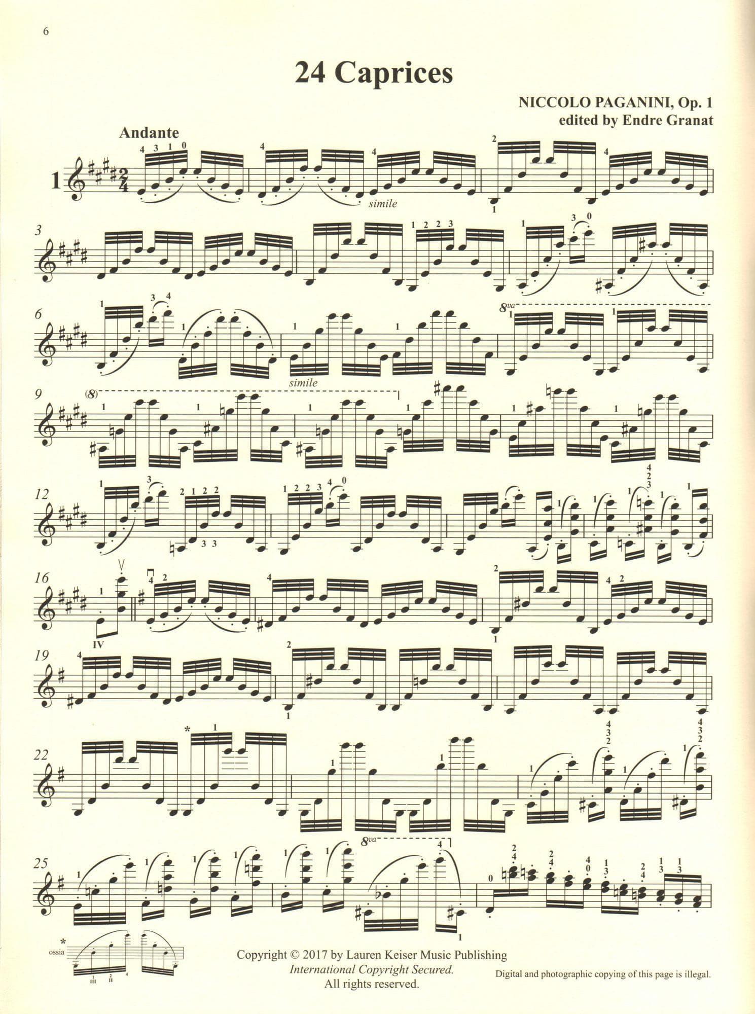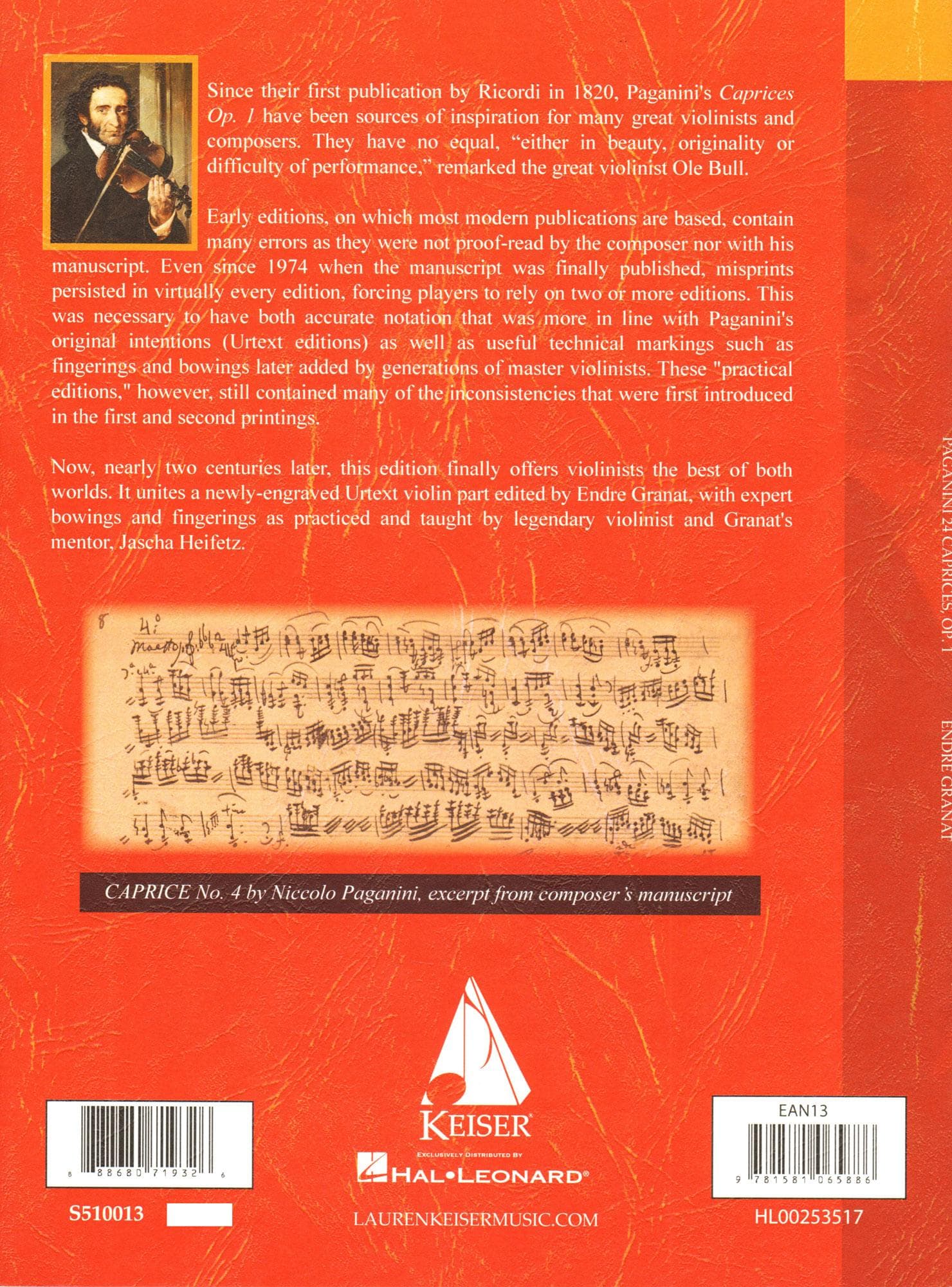 Paganini, Nicolo - 24 Caprices, Op. 1 - URTEXT Edition by Endre Granat - Keiser Publications - Heifetz Collection