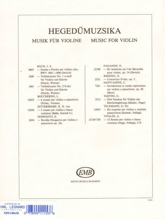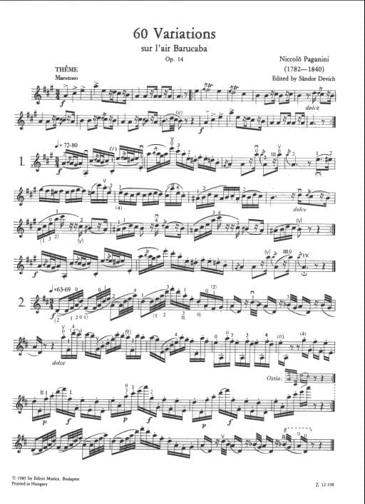 Paganini, Nicolo - 60 Variations on "Barucaba" for Violin, op 14 (Complete) - Solo Violin - edited by D Sandor - Edito Musica Budapest