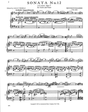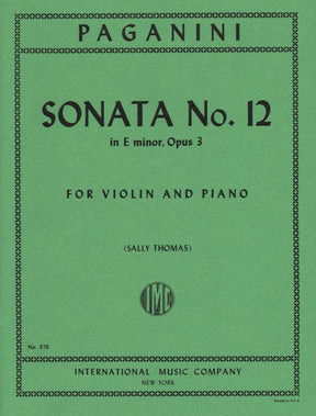 Paganini, Niccolo - Sonata No 12 in e minor, Op 3 - for Violin and Piano - edited by Sally Thomas - International Music Company