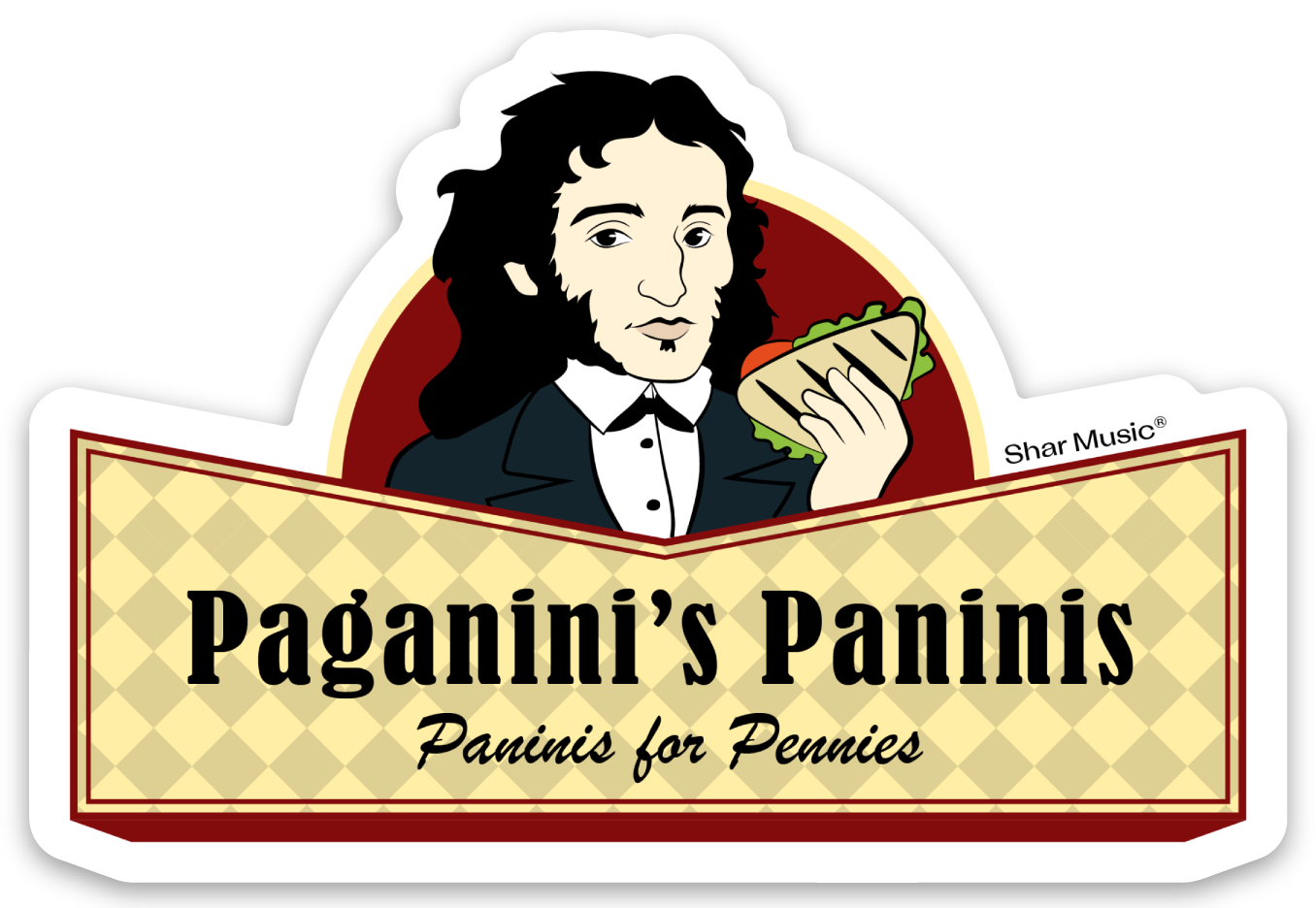 Paganini wasn’t just cooking with his compositions - check out this new cute ‘Paganini’s Paninis’ sticker from Shar Music. A great accessory for cases, water bottles, or as a fun gift for the violinist who loves paninis as we do!