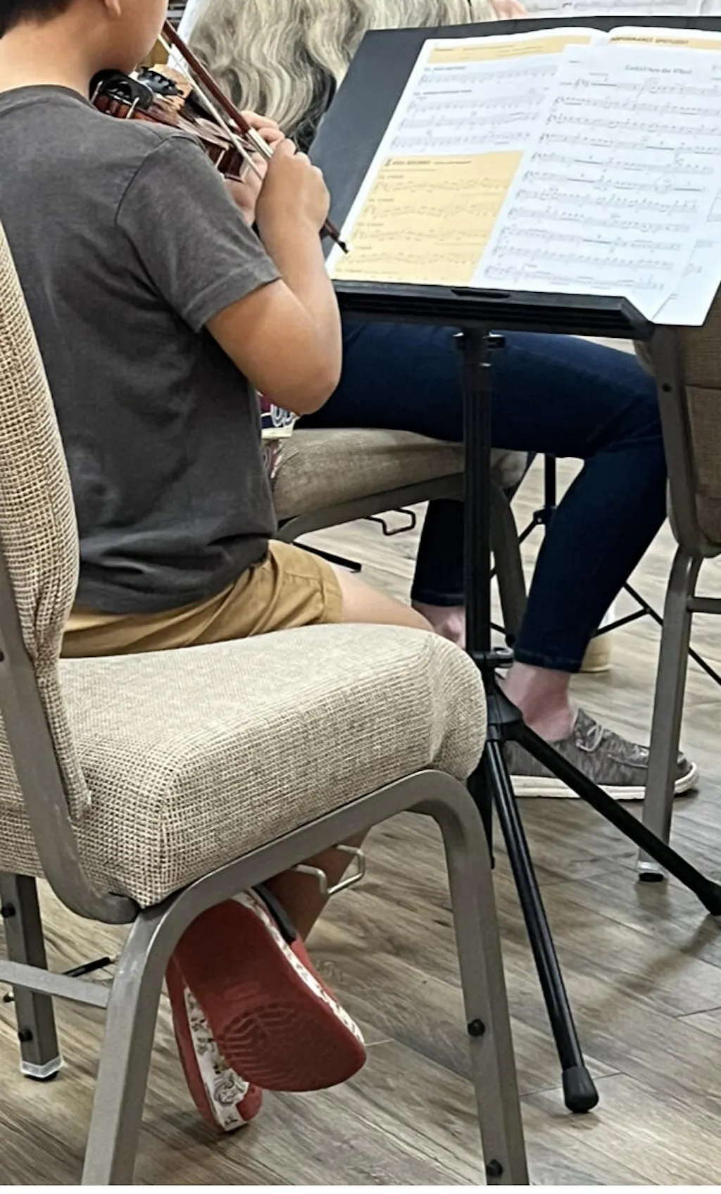 This high quality folding music stand is one of the most convenient that we have found. In fact, the head of our Product Department immediately bought four for his quartet! Made with high strength tubular steel shaft and legs, it features a fold-up polycarbonate desk that quickly collapses to fit into the included 24" x 6" x 6" carry bag. Height adjusts from 24.5" to 48" (lip to floor), and the desk has a large 20" x 13" surface. Lip depth is 2". Weighs only 6 lbs. for easy carrying. The legs do not come off, but it fits in the bag perfectly!