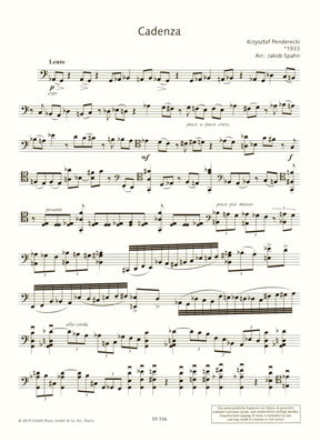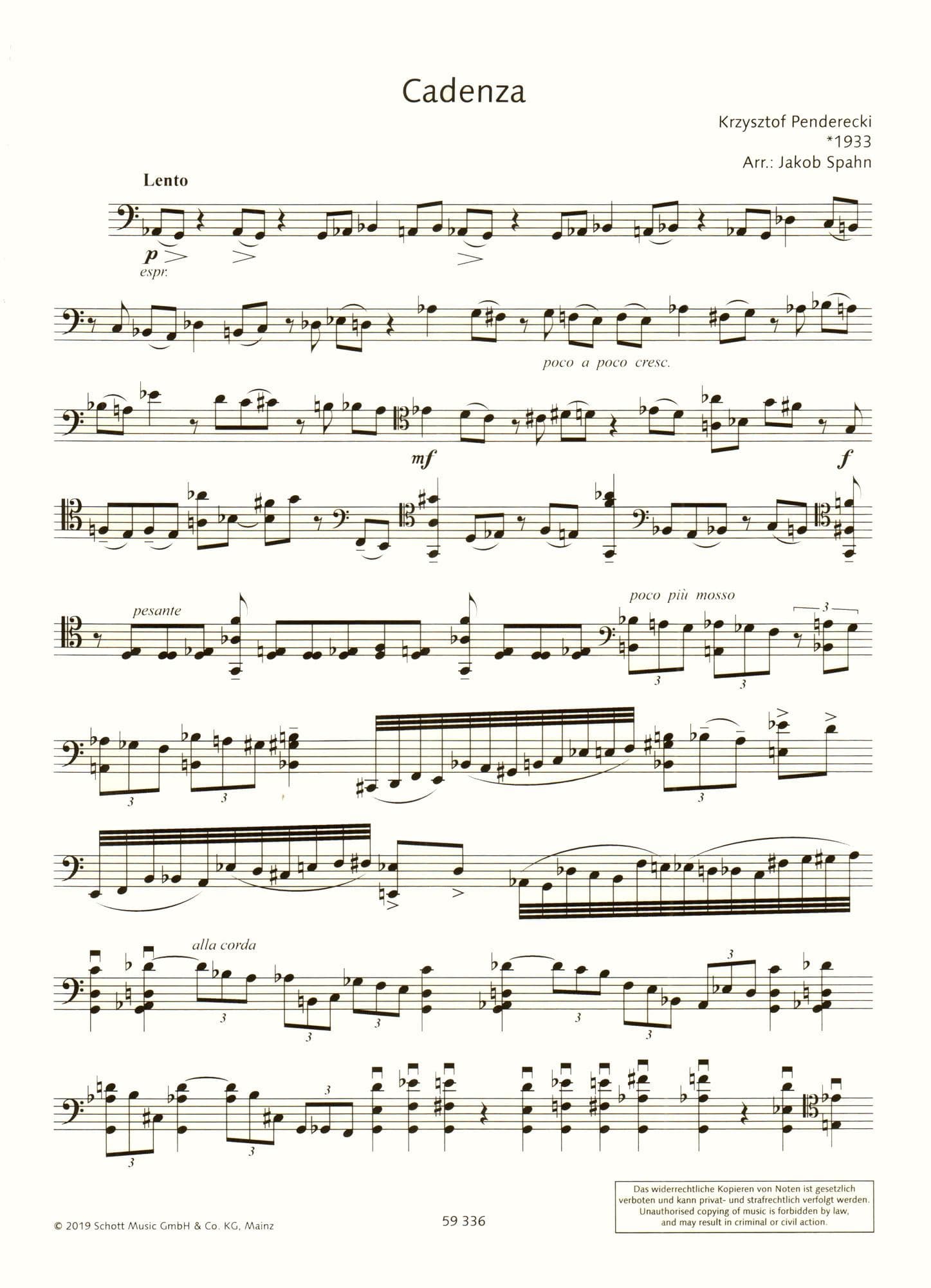 Penderecki, Krzysztof - Cadenza - Solo Cello - arranged by Jakoe Spahn - Schott Music