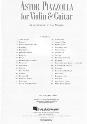 Piazzolla, Astor - Astor Piazzolla for Violin and Guitar - arranged by Ian Murphy - Hal Leonard Publication