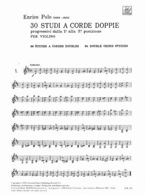 Polo, Enrico - 30 Studi a Corde Doppie - Violin - Ricordi