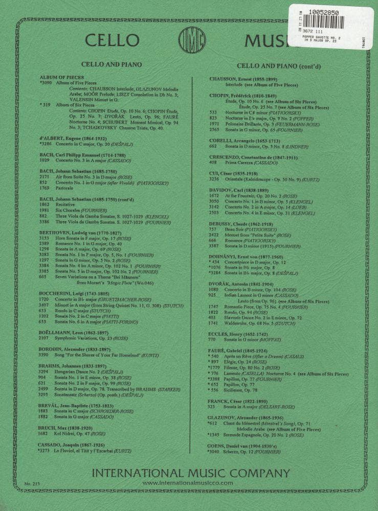Popper, David - Gavotte No 2 In D Major Op 23 - for Cello and Piano - edited by Leonard Rose - International Music Co