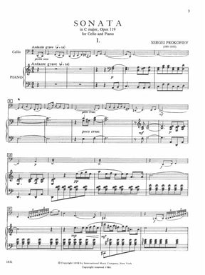 Prokofiev, Sergey - Cello Sonata in C Major, Op 119 - for Cello and Piano - edited by Rostropovich - International Music Company