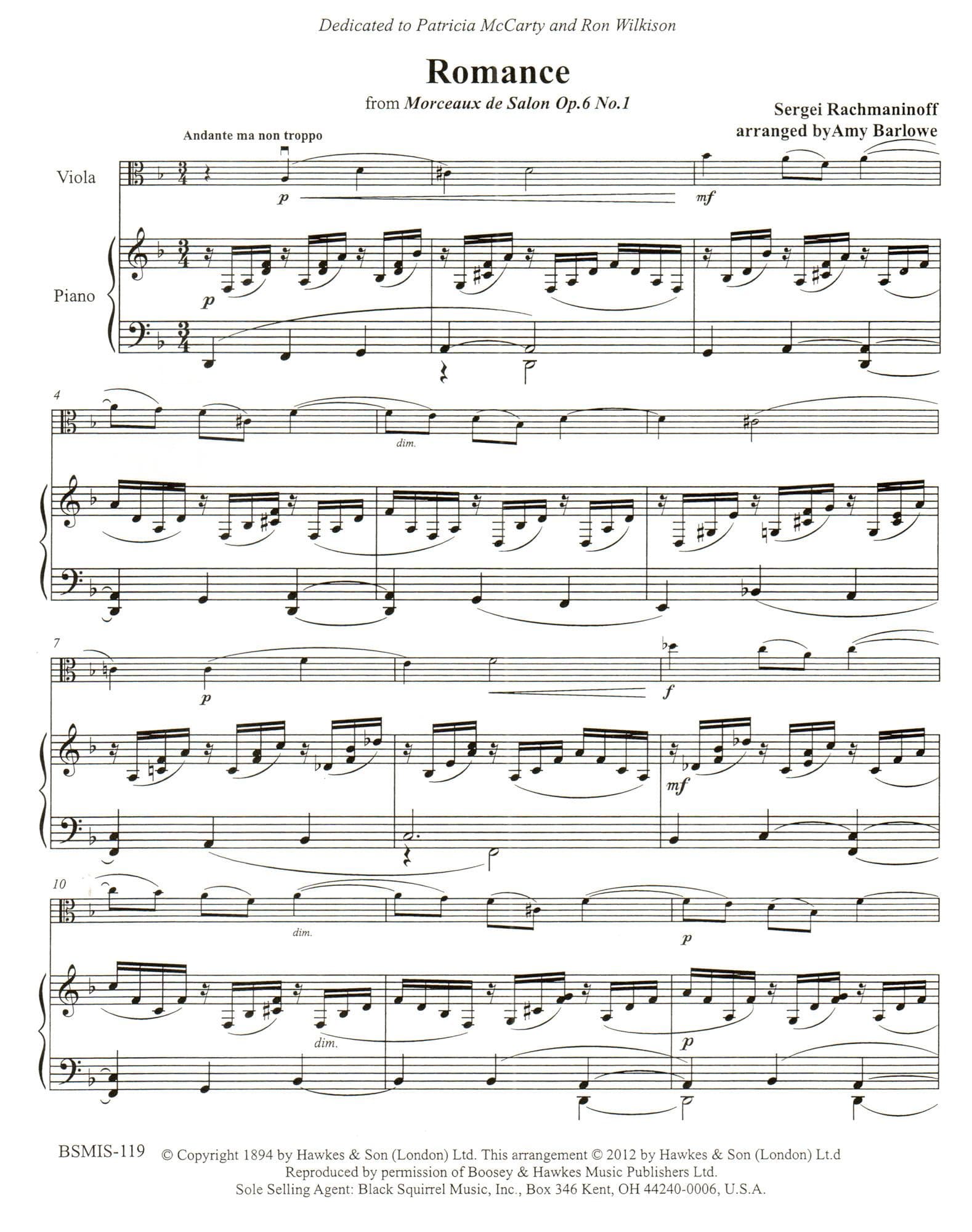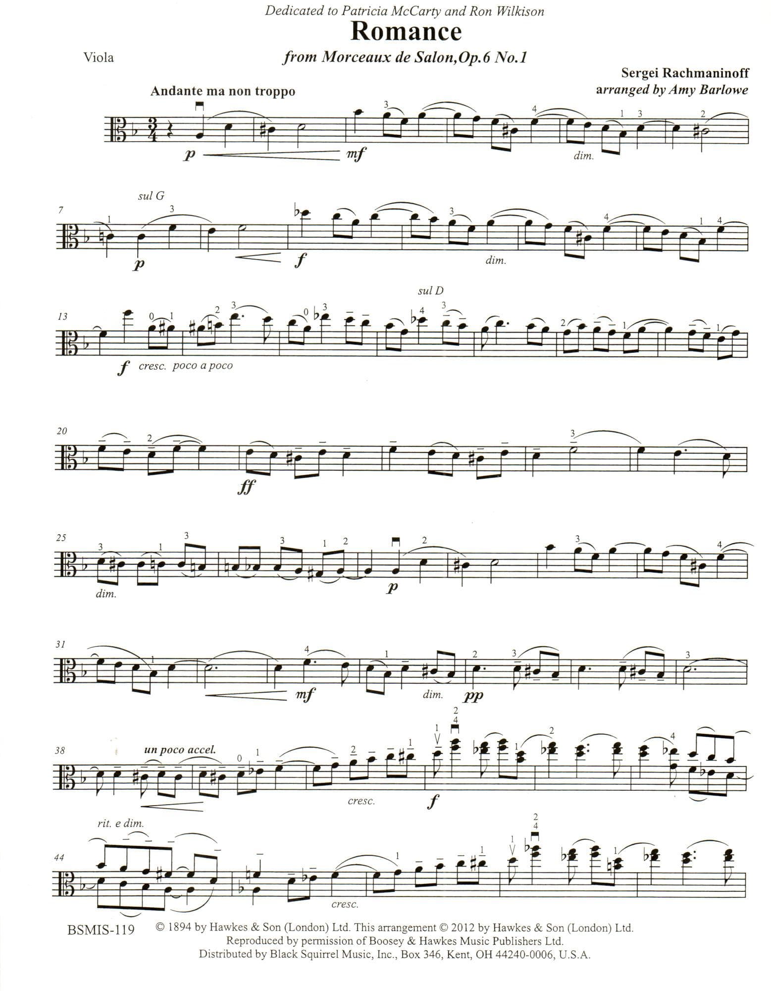 Rachmaninoff, Sergey - Romance from Morceaux de Salon, Op. 6, No. 1 - for Viola and Piano - Black Squirrel Publications