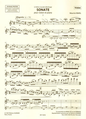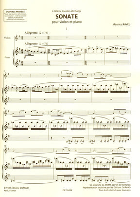 Ravel, Maurice - Sonata - for Violin and Piano - Durand Edition Musicales