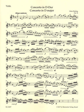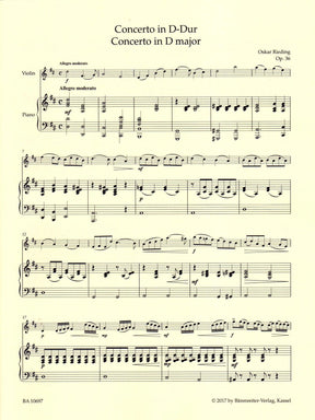 Rieding, Oskar - Violin Concerto in D Major, Op 36 - Violin and Piano - Barenreiter