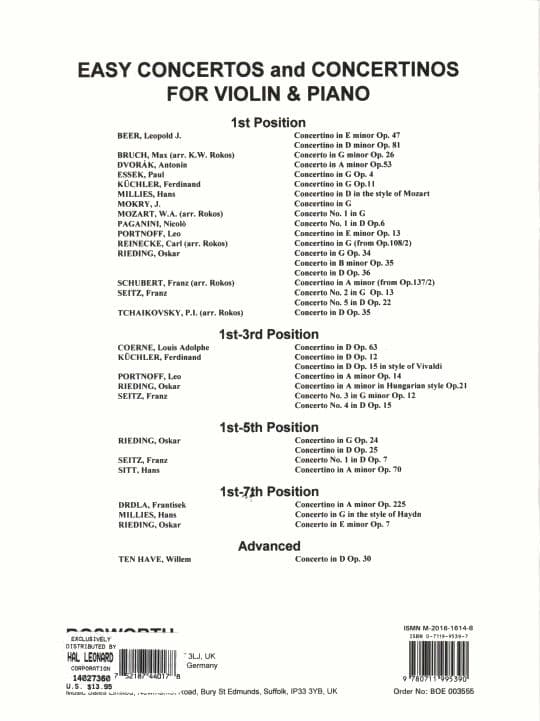 Rieding, Oskar - Concertino in D Major for Violin and Piano, Op 25 - Violin and Piano - Bosworth
