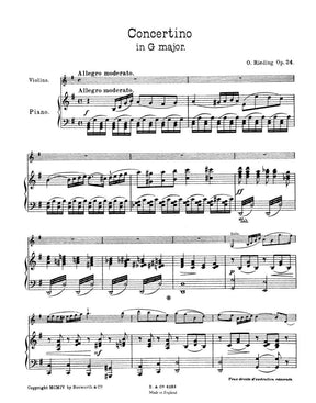 Rieding, Oscar - Concertino In G Major Op 24 For Violin and Piano Published by Bosworth & Co