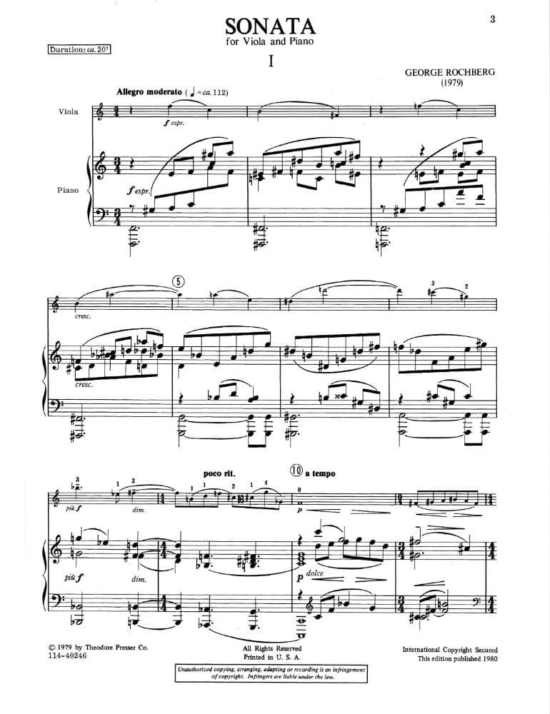 Rochberg, George - Sonata ( 1979 ) For Viola and Piano Published by Theodore Presser Company