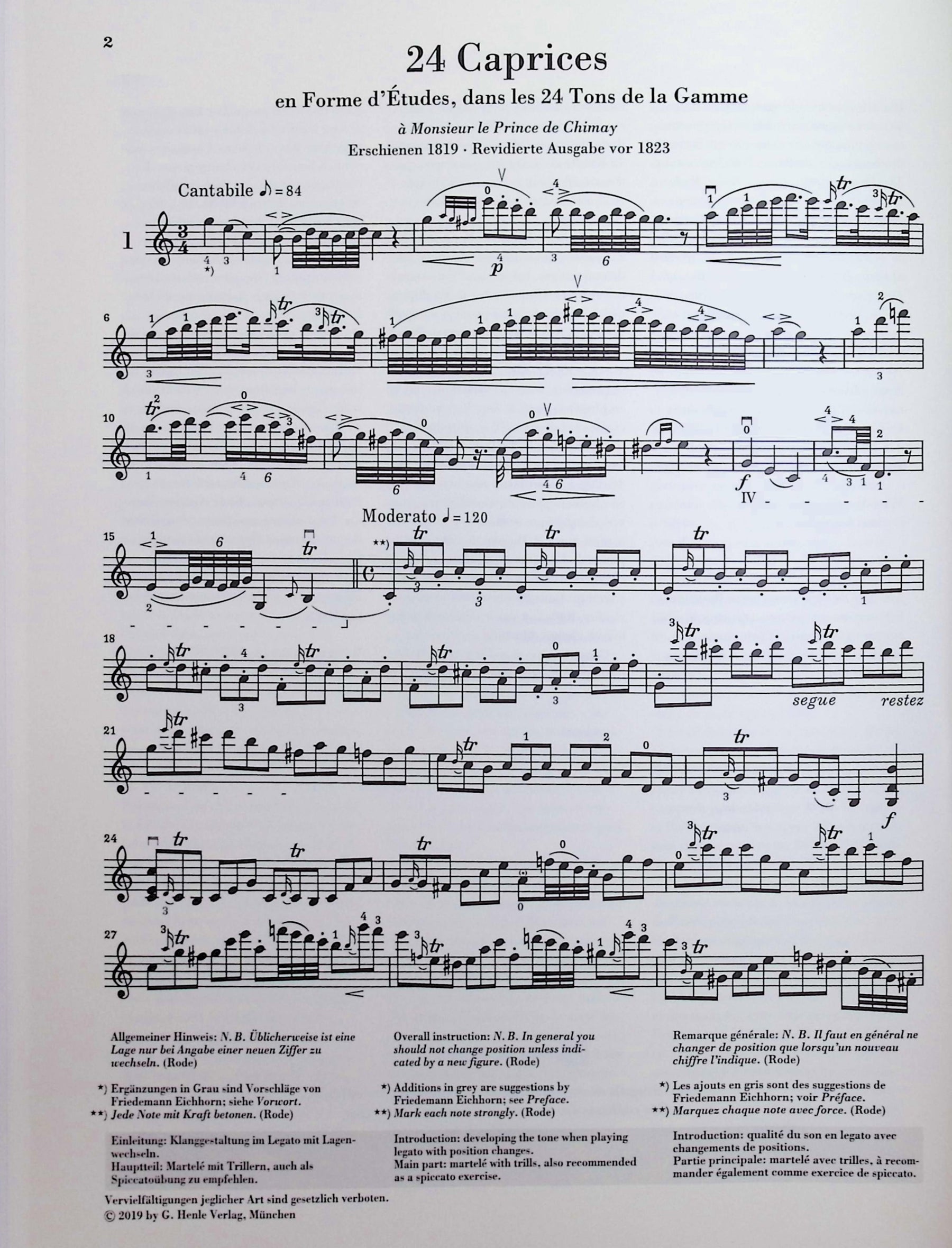 Rode, Pierre - 24 Caprices for Violin Solo - Edited by Gertsch - G. Henle Verlag