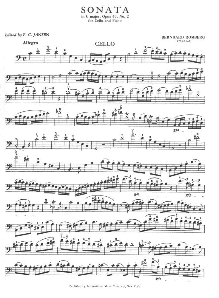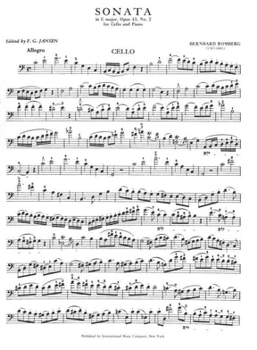 Romberg, Bernhard - Cello Sonata in C Major, Op 43 No 2 - for Cello and Piano - edited by F G Jansen - International Music Company