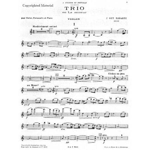 Ropartz, J Guy - Trio in a minor (1918) - Violin, Cello, and Piano - Lauren Publications