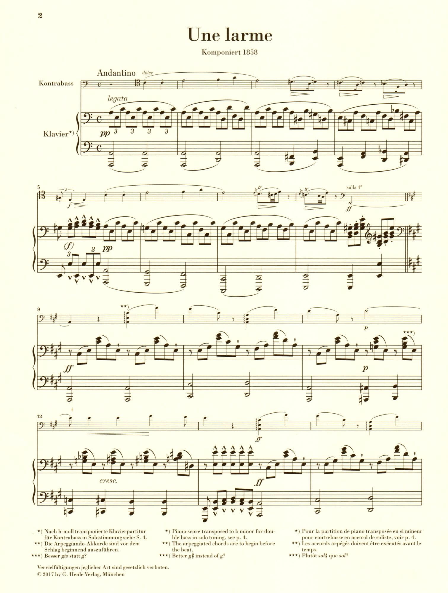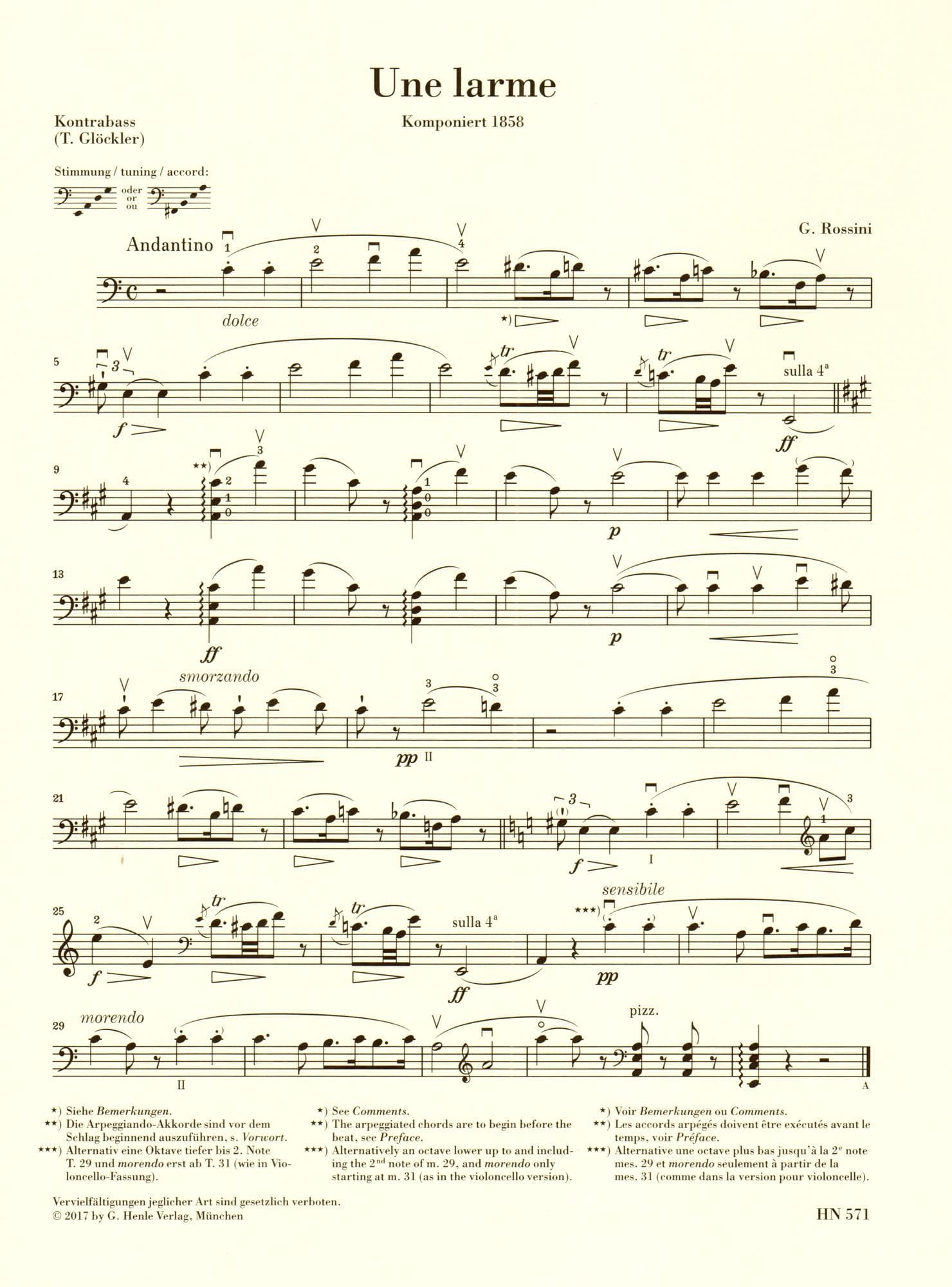 Rossini, G - Une larme - for Double Bass and Piano - G Henle Verlag URTEXT