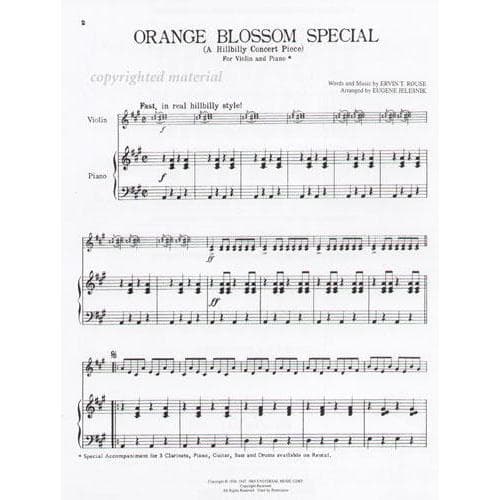 Rouse, Ervin - Orange Blossom Special - Violin and Piano - arranged by Eugene Jelesnik - Universal Music Publishing