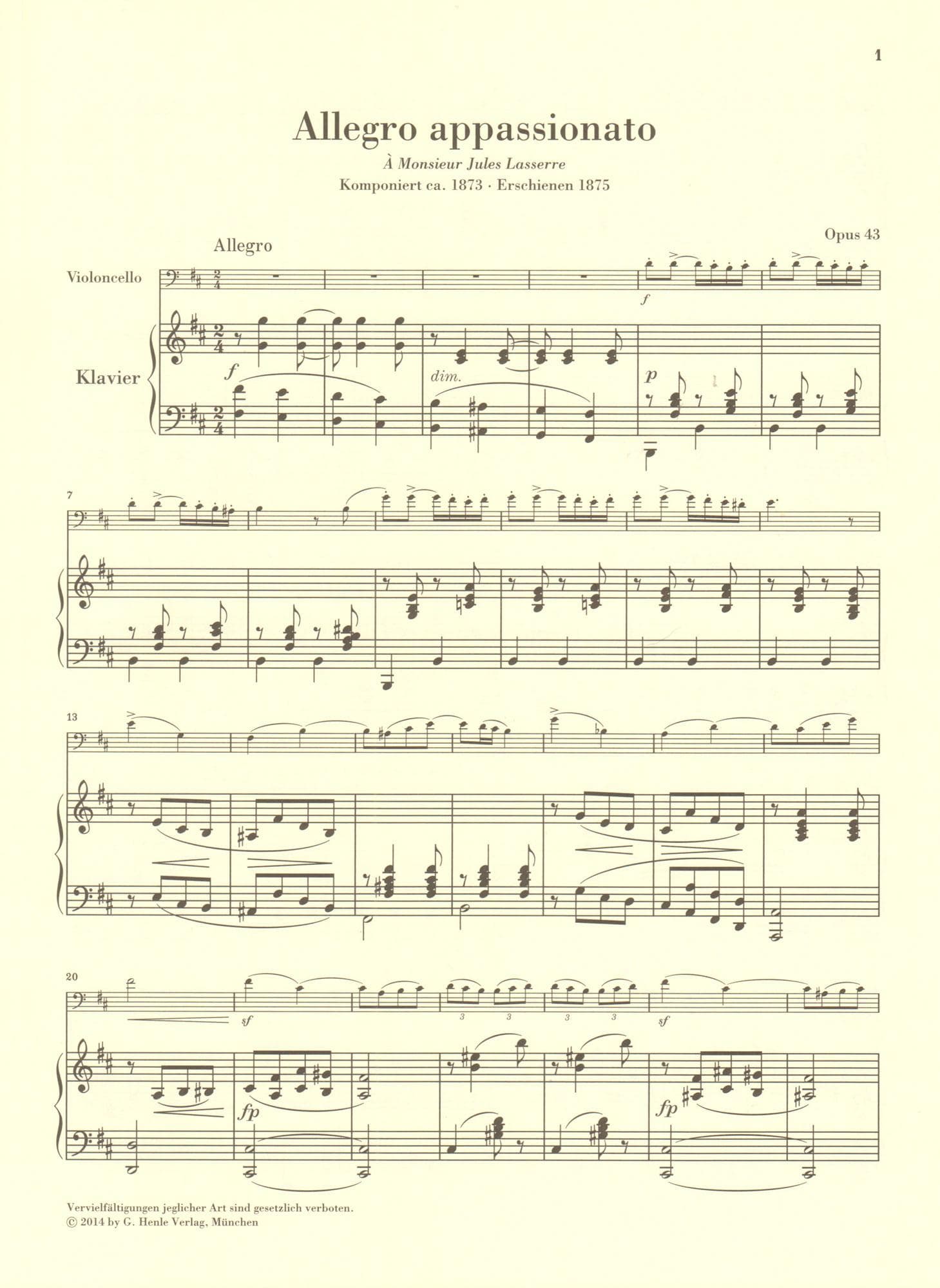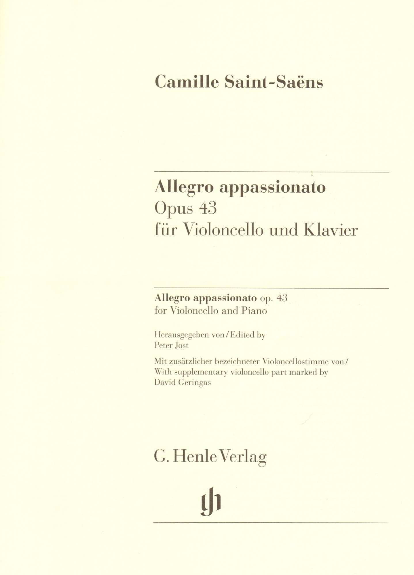 Saint-Saëns, Camille - Allegro Appassionato, Opus 43 - for Cello and Piano - edited by Jost and Geringas - G. Henle Verlag URTEXT