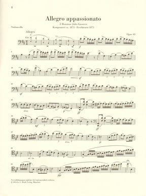 This Urtext edition of the Allegro Appassionato by Saint-Saens includes a historical preface, comments, the piano score, and two copies of the cello part - one with fingerings and bowings by David Geringas, and one with no fingerings or bowings.