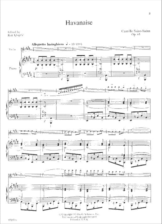 Saint-Saëns, Camille - Havanaise, Op 83 - Violin and Piano - edited by Rok Klop?i? - G Schirmer Edition