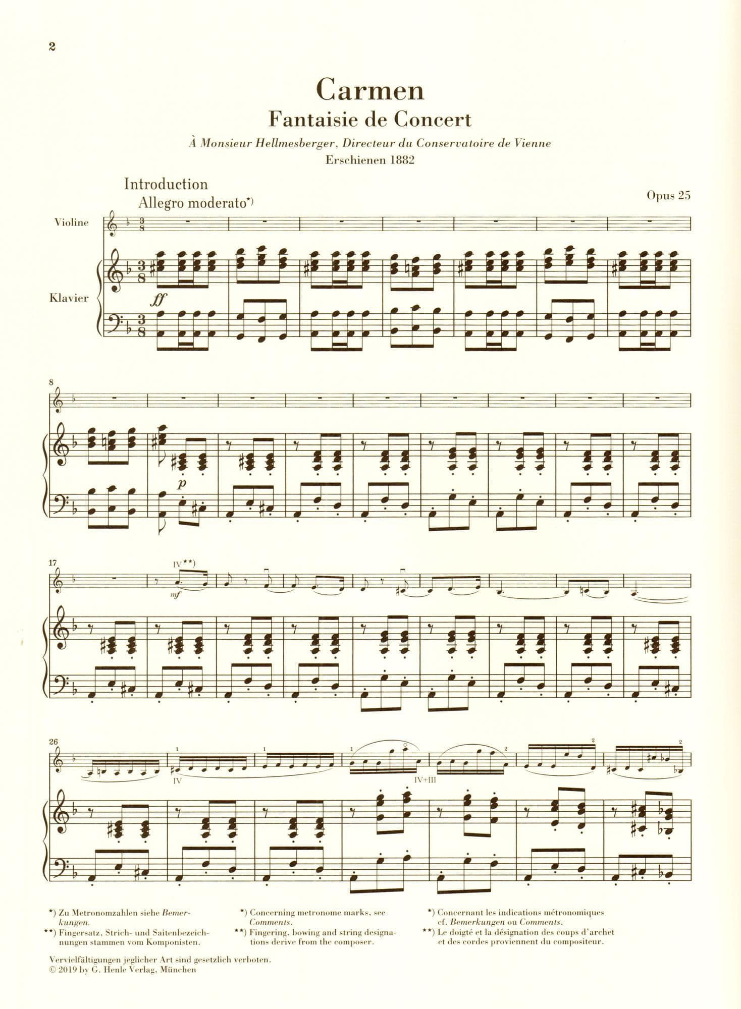 Sarasate, Pablo - Carmen Fantasy, Op. 25 - Violin and Piano - edited by Peter Jost - G Henle Verlag URTEXT