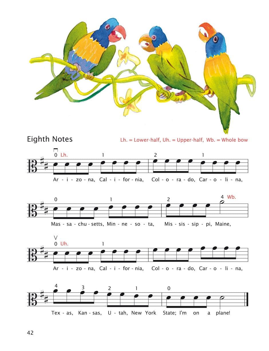 - Advanced viola techniques such as varied bow strokes and shifting are introduced in a basic form.
