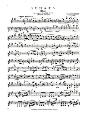 Schubert, Franz - Sonata in A Major (Duo), Op 162, D 574 For Violin and Piano Published by International Music Company