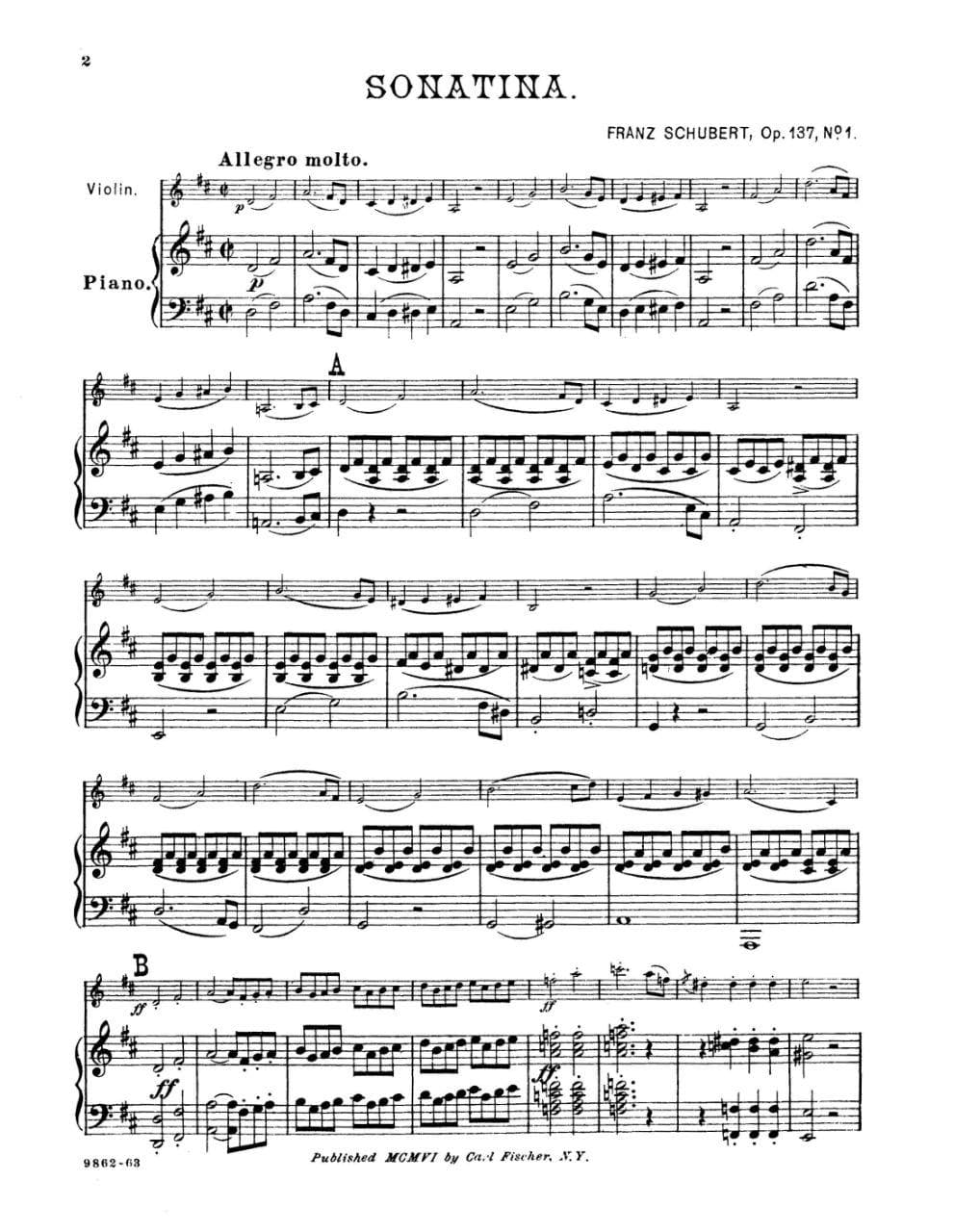 Schubert, Franz - Three Sonatinas Op 137 For Violin and Piano Edited by Fischer Published by Carl Fischer