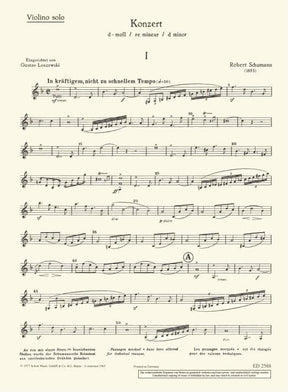 Schumann, Robert - Violin Concerto in D Minor (1853) - for Violin and Piano - Schott
