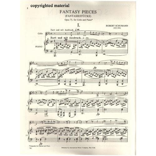 Schumann, Robert - Fantasy Pieces Op 73 For Cello and Piano Edited by Gruetzmacher Published by International Music Company