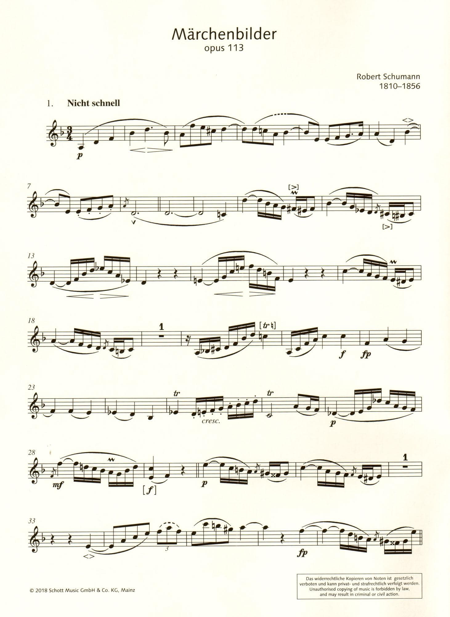 Schumann, Robert - Marchenbilder (Fairy-Tale Pictures), Op 113 - for Viola (Violin) and Piano - Schott
