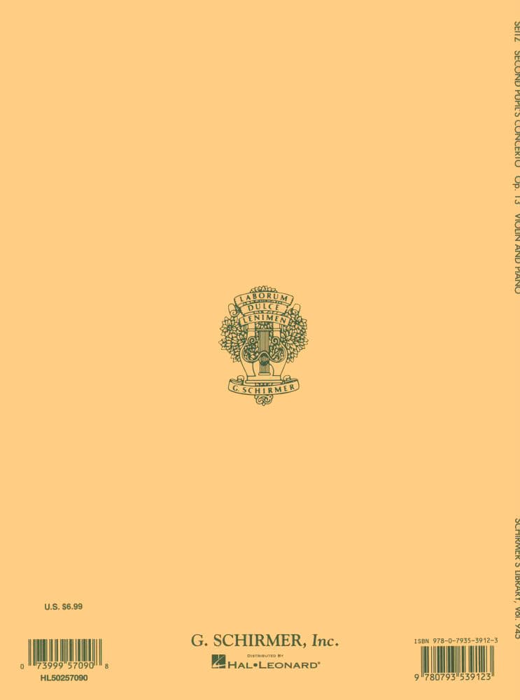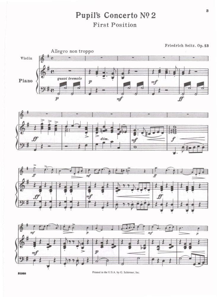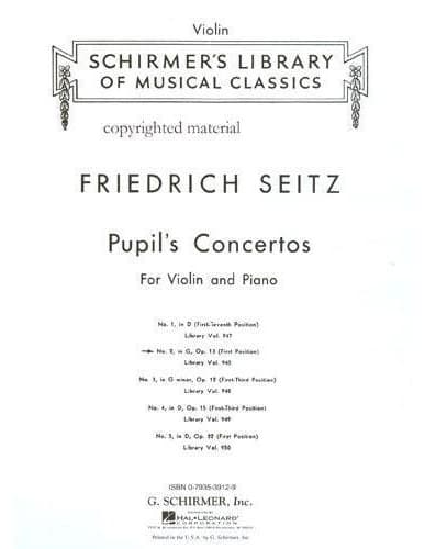 Seitz, Fritz (Friedrich) - Student's Concerto No 2 in G Major, Op 13 - Violin and Piano - Schirmer