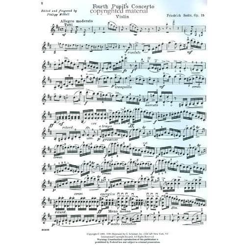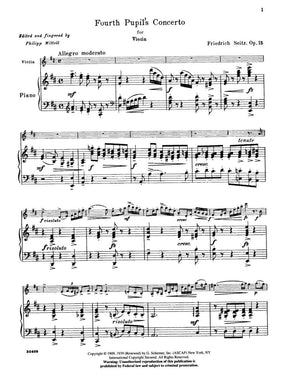 Seitz, Fritz (Friedrich) - Student's Concerto No 4 In D Major Op 15 For Violin and Piano Edited by Mittell Published by G Schirmer