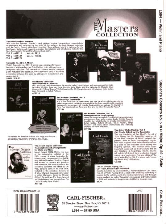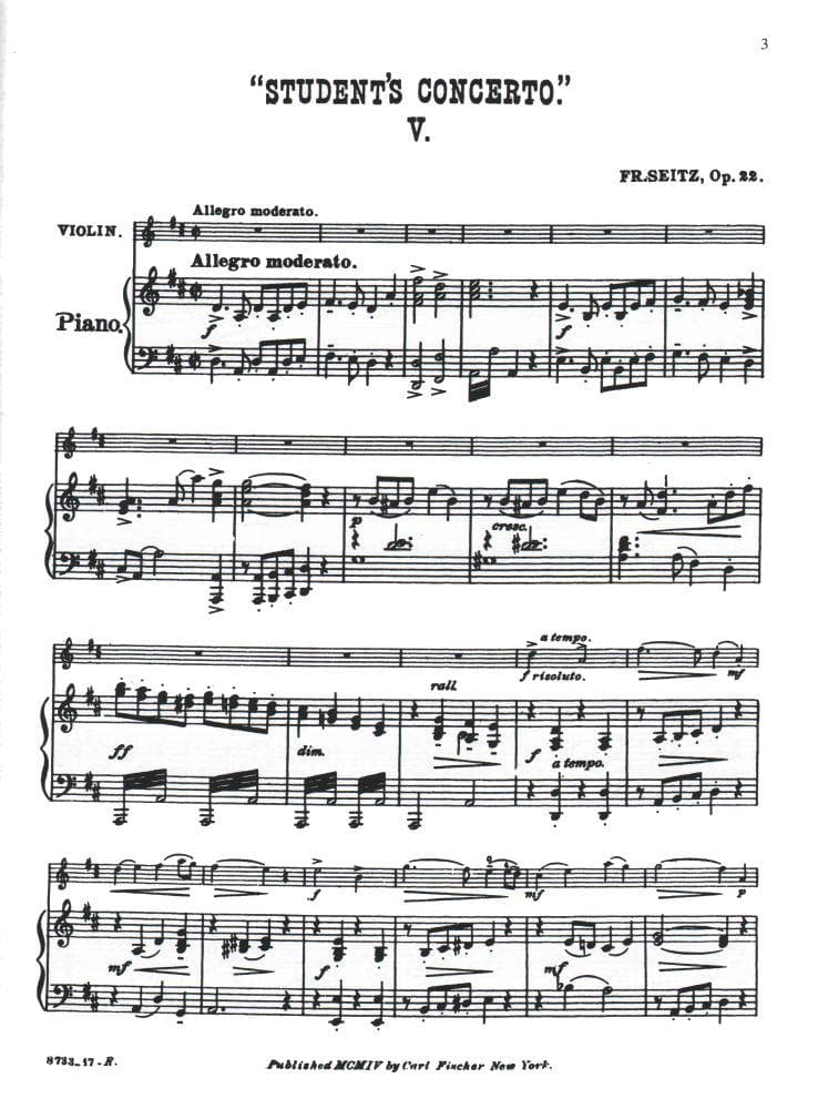 Seitz, Fritz (Friedrich) - Student's Concerto No 5 in D Major, Op 22 - Violin and Piano - Carl Fischer