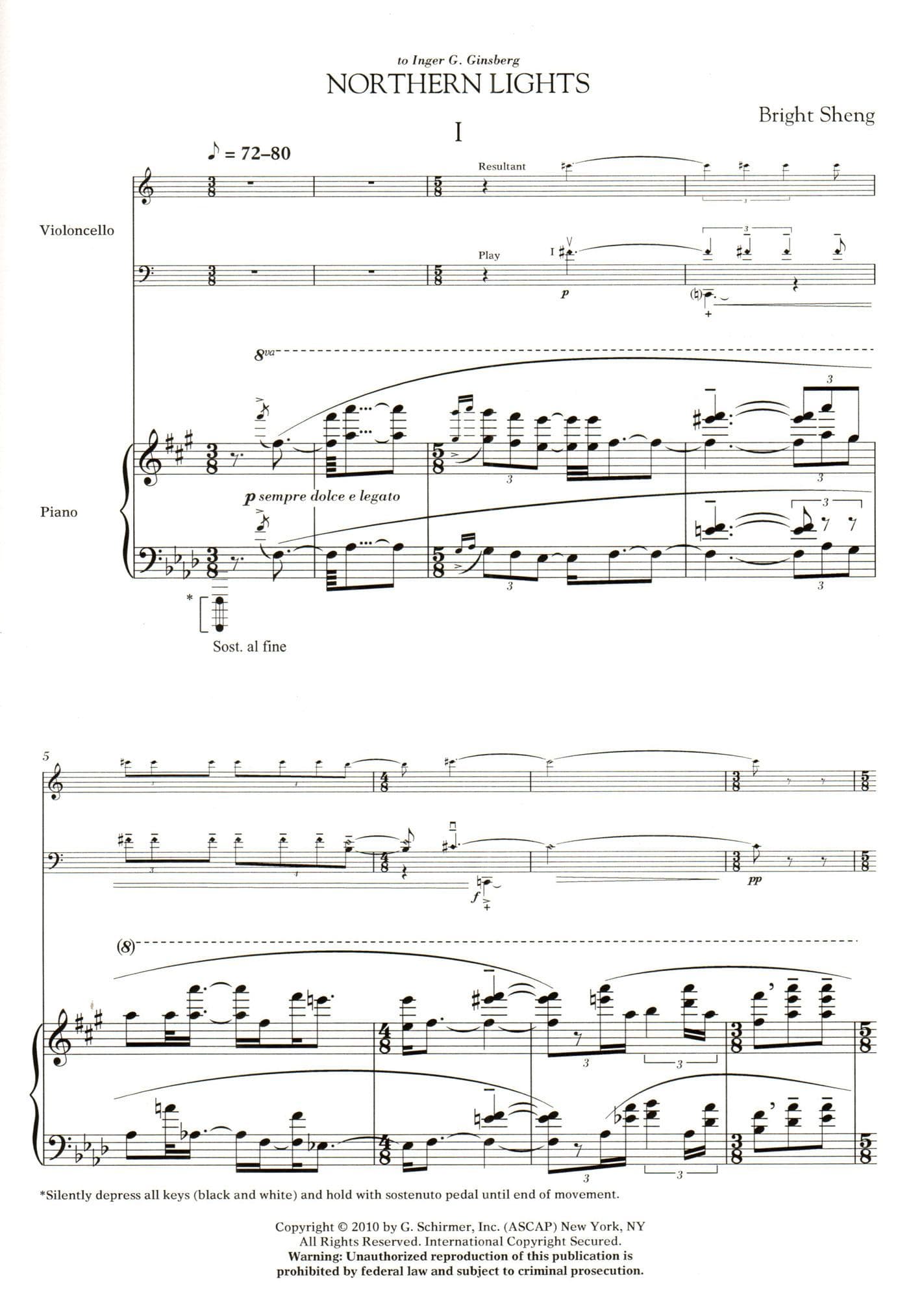 Sheng, Bright - Northern Lights - for Cello and Piano - G Schirmer Edition