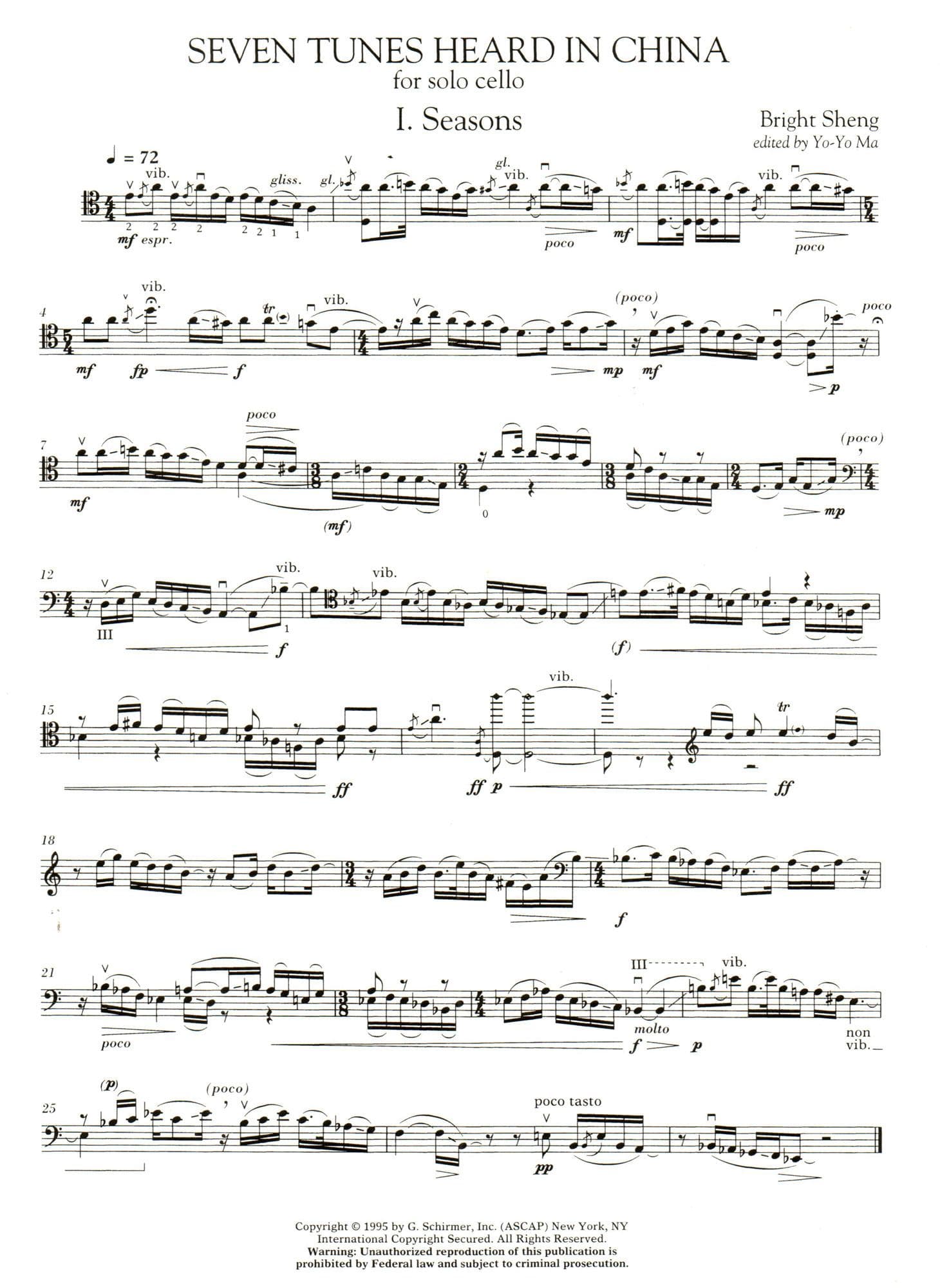 Sheng - Seven Tunes Heard in China for Cello Published by G Schirmer
