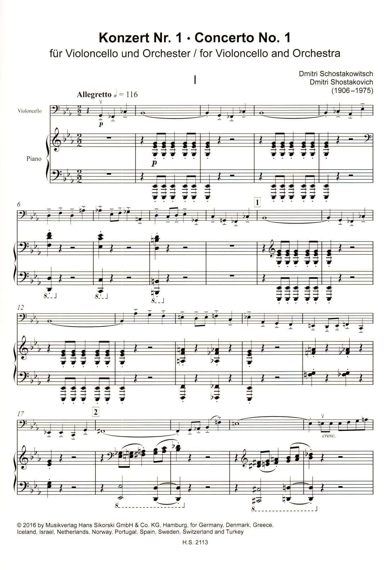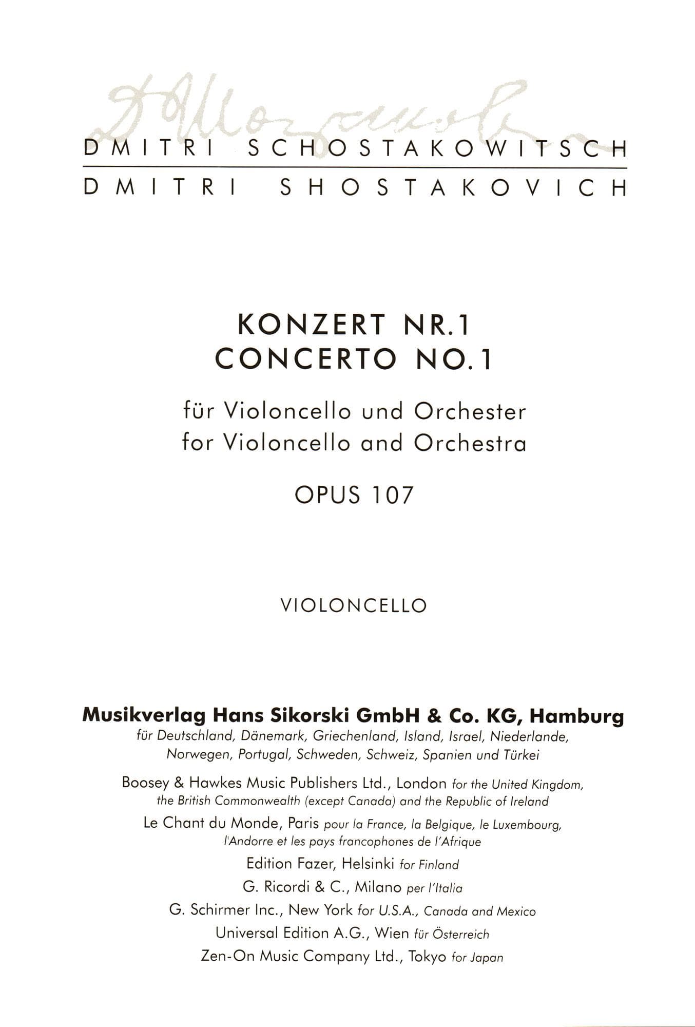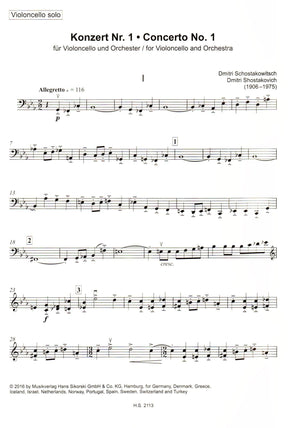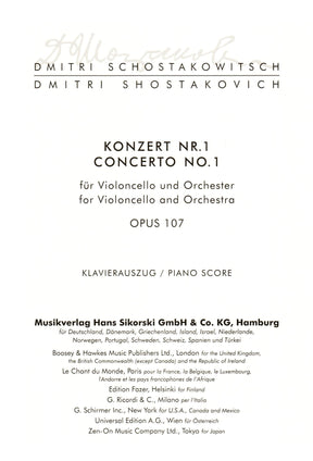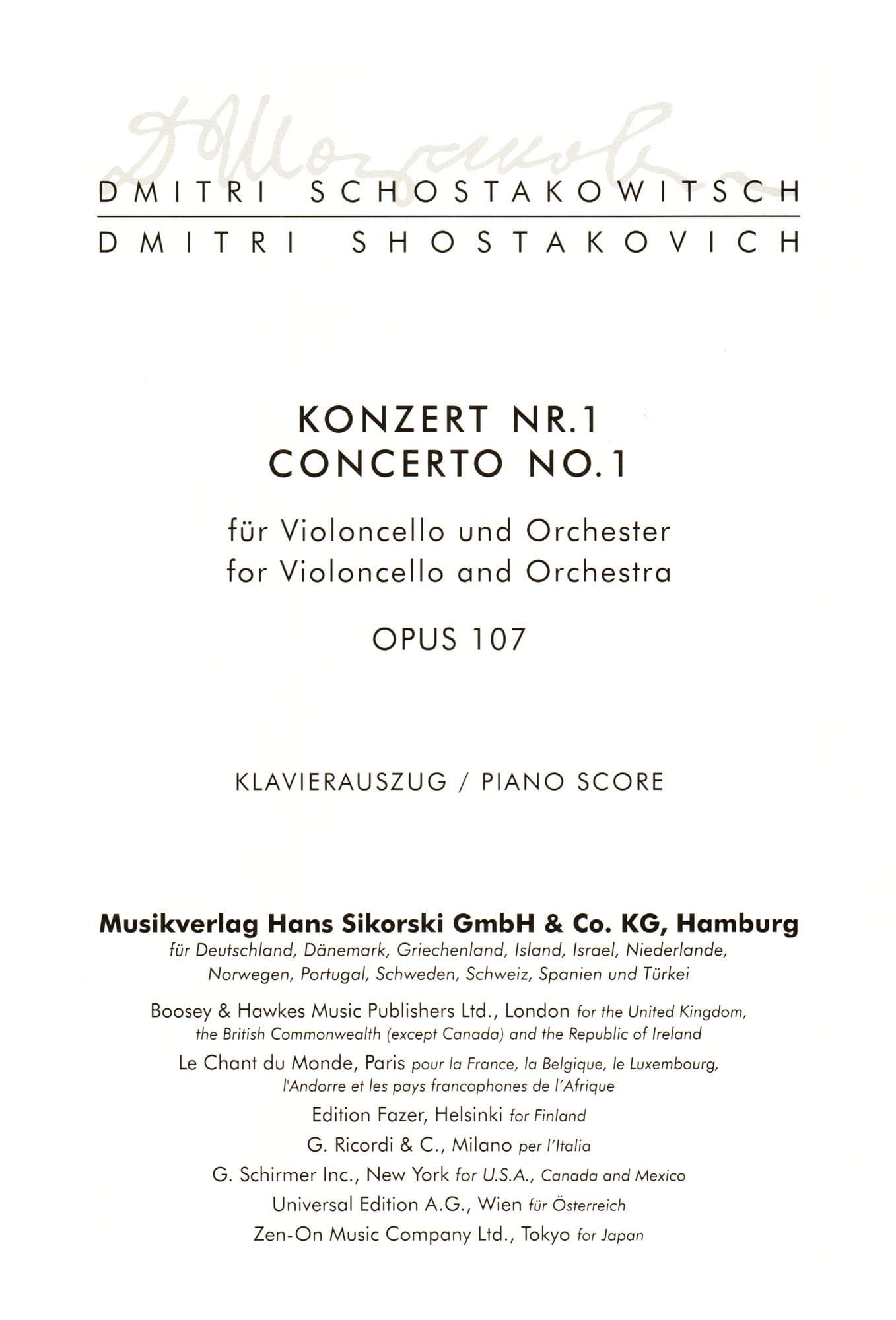 Shostakovich, Dmitri - Concerto No 1 in E flat Op 107 For Cello and Piano Published by Sikorski