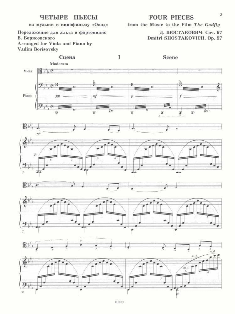 Shostakovich, Dmitri - Four Pieces from "The Gadfly", Op 97 - Viola and Piano - arranged by Vadim Borisovsky - DSCH Edition