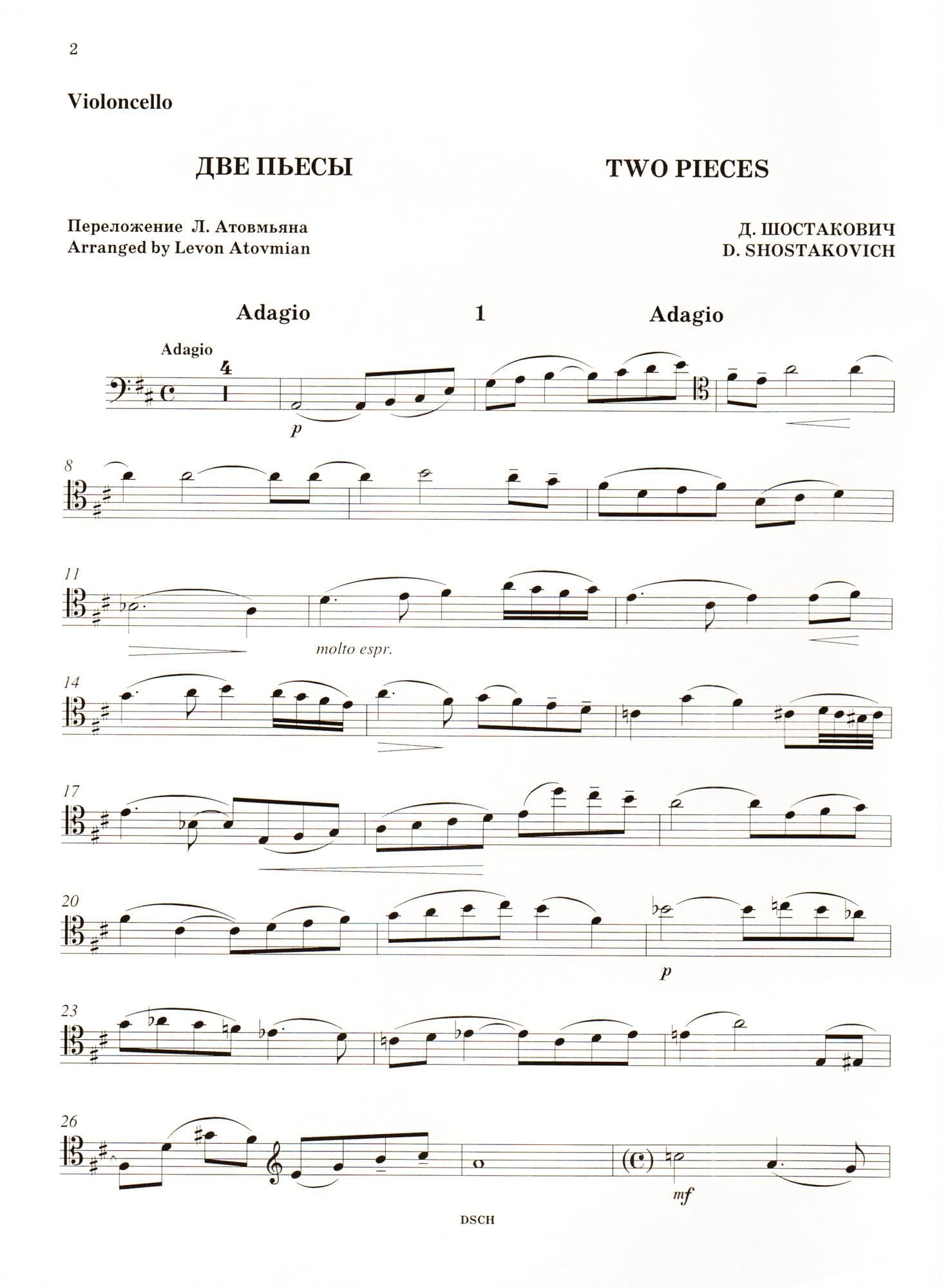 Shostakovich, Dmitri - Two Pieces for Cello and Piano Published by DSCH