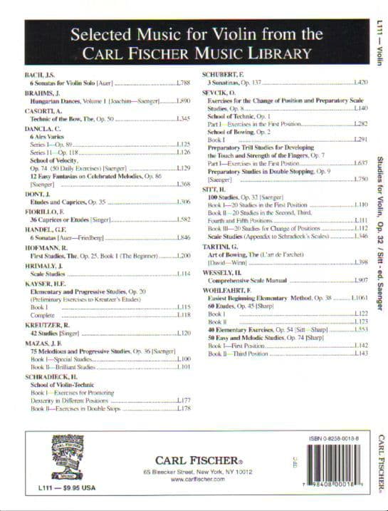 Sitt, Hans - 100 Etudes Op 32, Book 2 - Violin - edited by Gustav Saenger - published by Carl Fischer