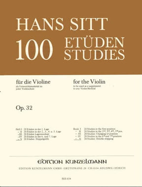 Sitt, Hans - 100 Etudes for Violin, Op 32 Volume 5: Double Stops - Violin - Kunzelmann
