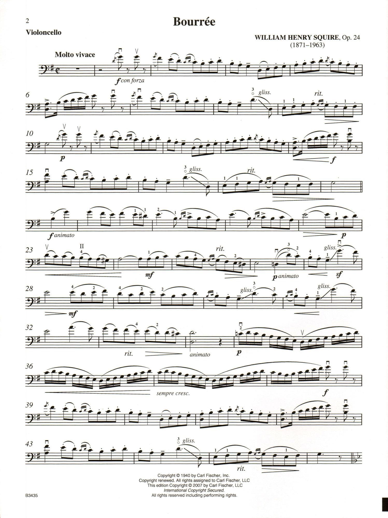 Squire, William Henry - Bouree Op 24 For Solo Cello & Piano Published by Carl Fischer