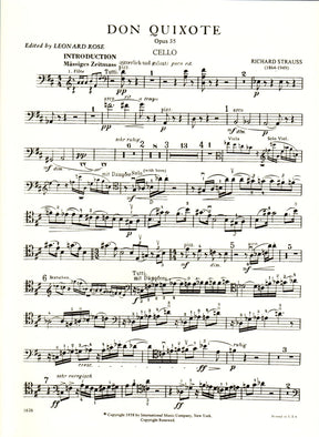 Strauss, Richard - Don Quixote, Op 35 - Solo Cello part - edited by Leonard Rose - International Music Company
