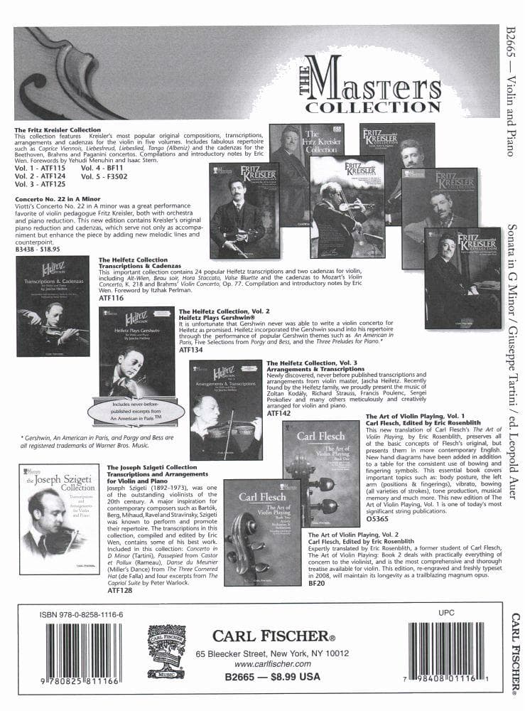 Tartini, Giuseppe - Sonata in g minor Op 1 No 10 For Violin and Piano Edited by Leopold Auer Published by Carl Fischer