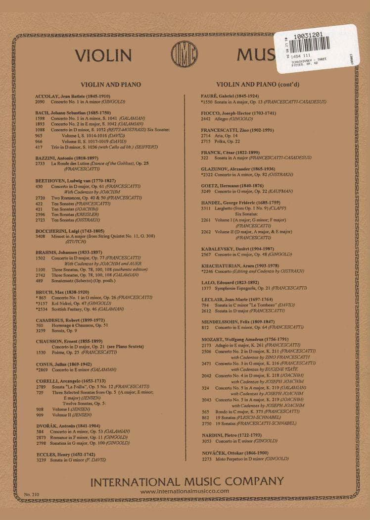 Tchaikovsky, PI - Souvenir d'un Lieu Cher: Meditation, Scherzo and Melodie, Op 42 - Violin and Piano - edited by Galamian - International Music Company
