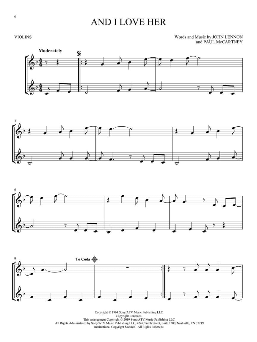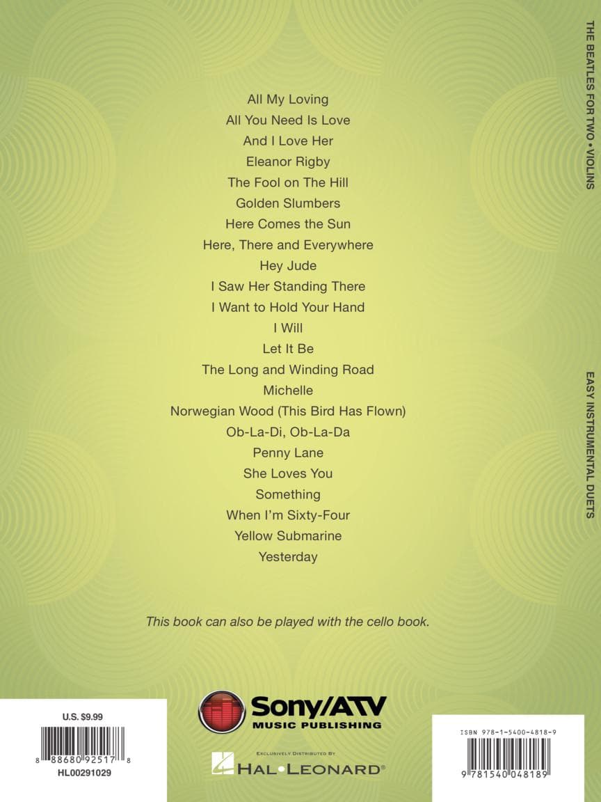 The Beatles for Two: 23 Favorites - Two Violins - Arranged by Mark Phillips - Hal Leonard