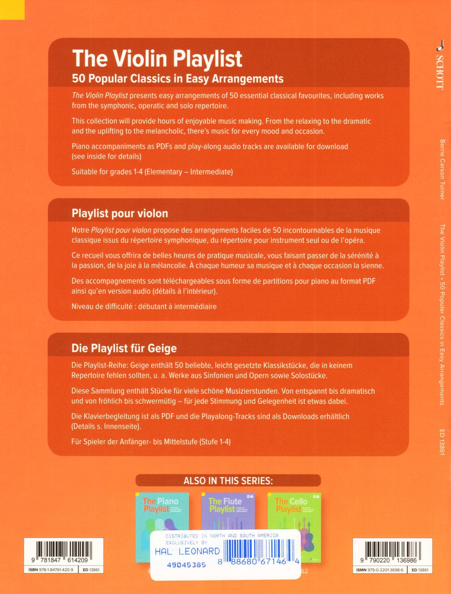 The Violin Playlist - 50 Popular Classics - arranged by Barrie Carson Turner - for Violin with Online Audio or Printable Piano Accompaniment - Schott